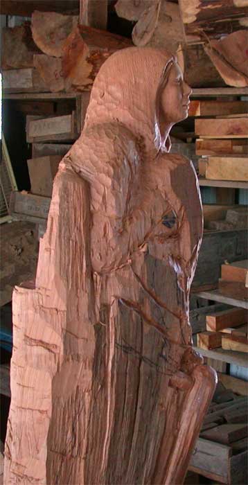 The image below shows Birder in progress. The idea for it being a birder came from puzzling over what she should hold in her hand and what to do with all the extra mass at the bottom of the slightly too short billet. If she's standing in ankle deep water, then she's tall enough.